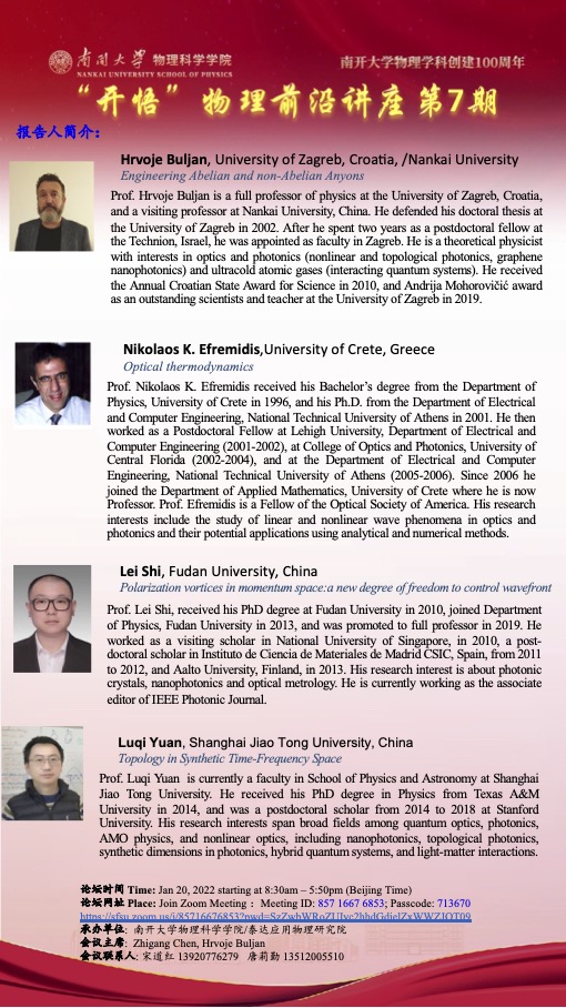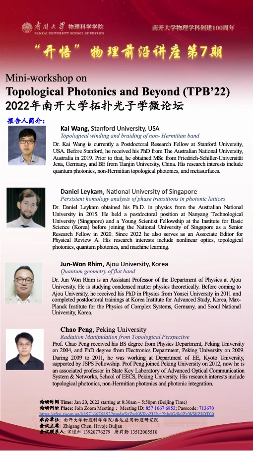 Kaiwu Lecture 7: 2022年南开大学拓扑光子学微论坛